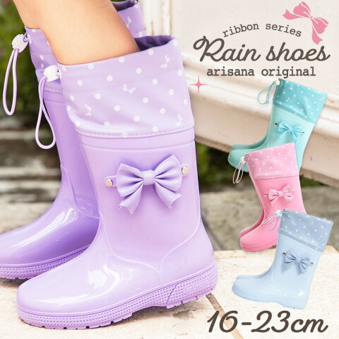 レインブーツ キッズ 長靴 女の子 子供 ジュニア [ 雨靴 小学生 通園 通学 雨 雪 おしゃれ フード リボン ロング ラベンダー ミント ピンク ブルー 16 17 18 19 20 21 22 23 cm ]