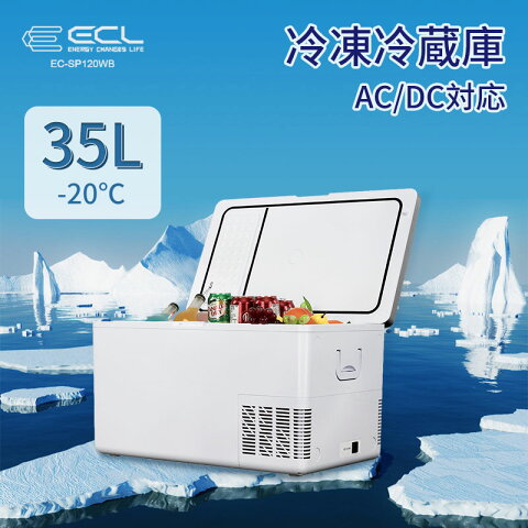 【P10倍】新作 ECL 車載冷蔵庫 35L 冷凍室-20℃~-12℃ 冷蔵室0℃~8℃ 2WAY電源対応 AC100V DC12V/24V ポータブル冷蔵庫 急速冷凍庫 大容量 省エネ 静音 庫内灯付き 低電圧保護 AC・DCコード付き 車載家庭両用 車中泊 キャンプ 釣り 一年保証